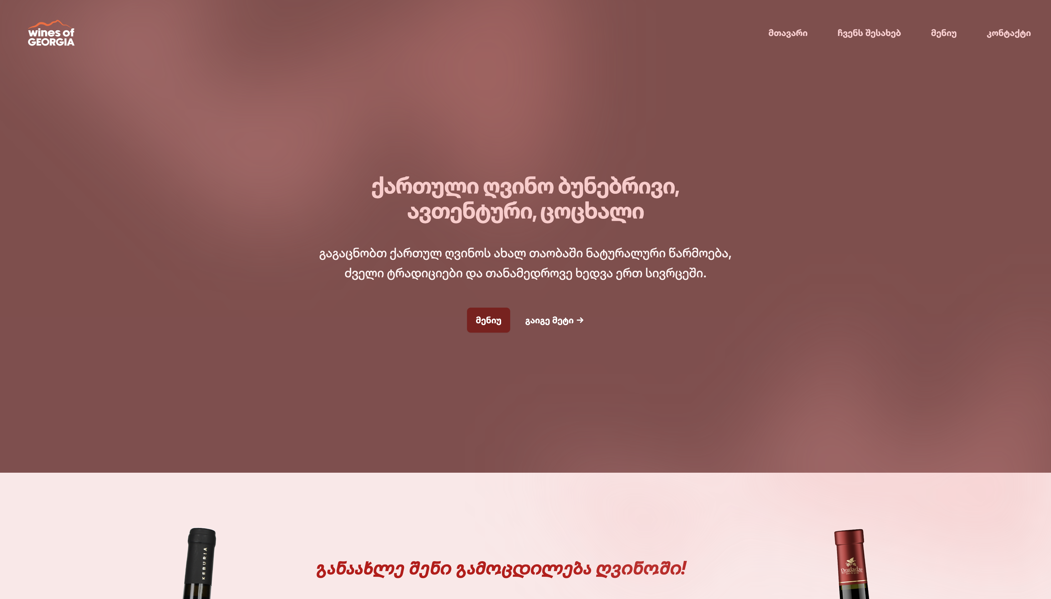 Responsive website showcasing authentic Georgian wines with rich traditions. Browse our wine catalog and learn about each variety.